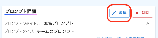 - プロンプト詳細から「編集」ボタンをクリックします。