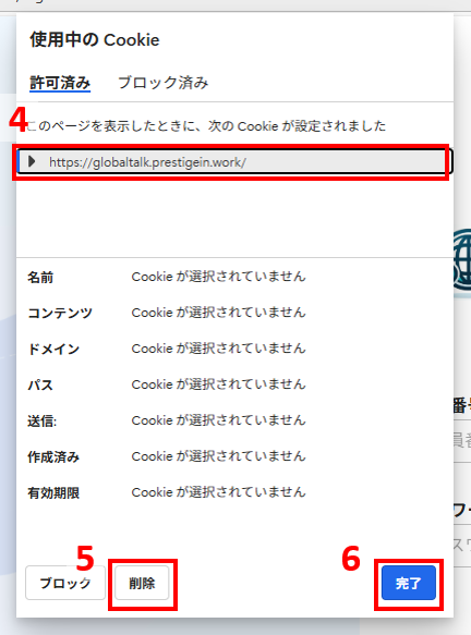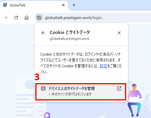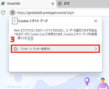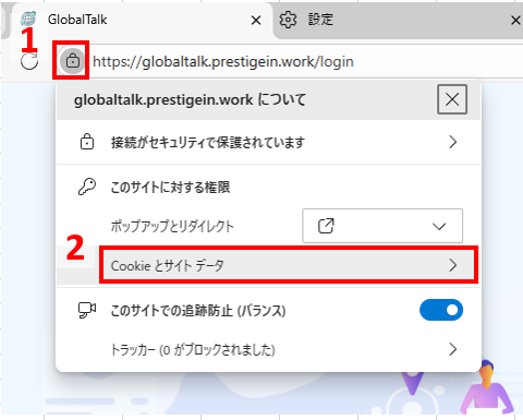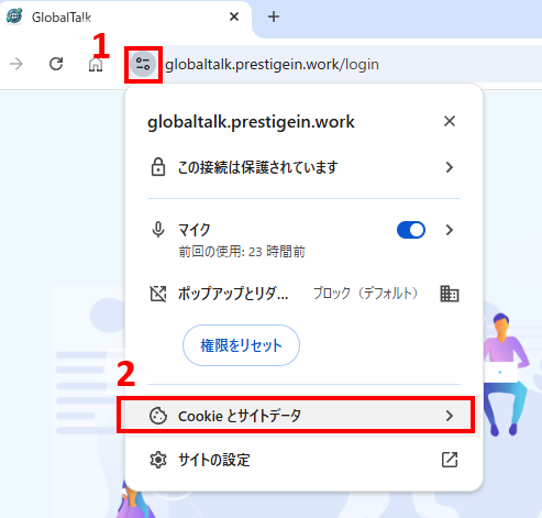 - GlobalTalkのログイン画面を表示した状態で、URLの左側🔒アイコンをクリックする。