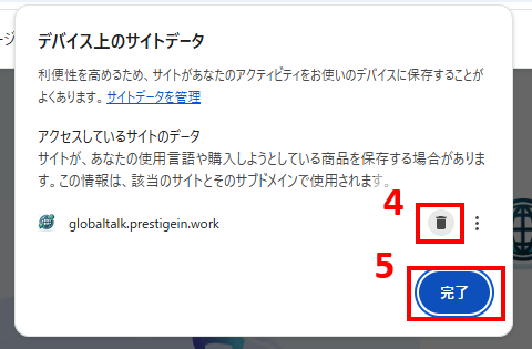 - Cookieとサイトデータをクリックする。