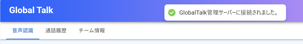 - 接続に成功すると、画面上部に 「GlobalTalk 管理サーバーに接続されました。」 のトースト表示が出ます。