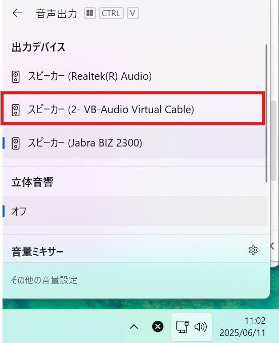 ステレオミキサーは、音声を入力するための仮想オーディオデバイスで、GlobalTalk の音声認識機能を有効にします。