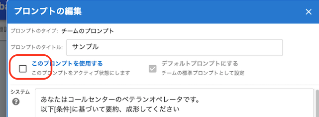 5. 自動要約時に使用するデフォルトプロンプトの切り替え(チーム管理者向け)¶