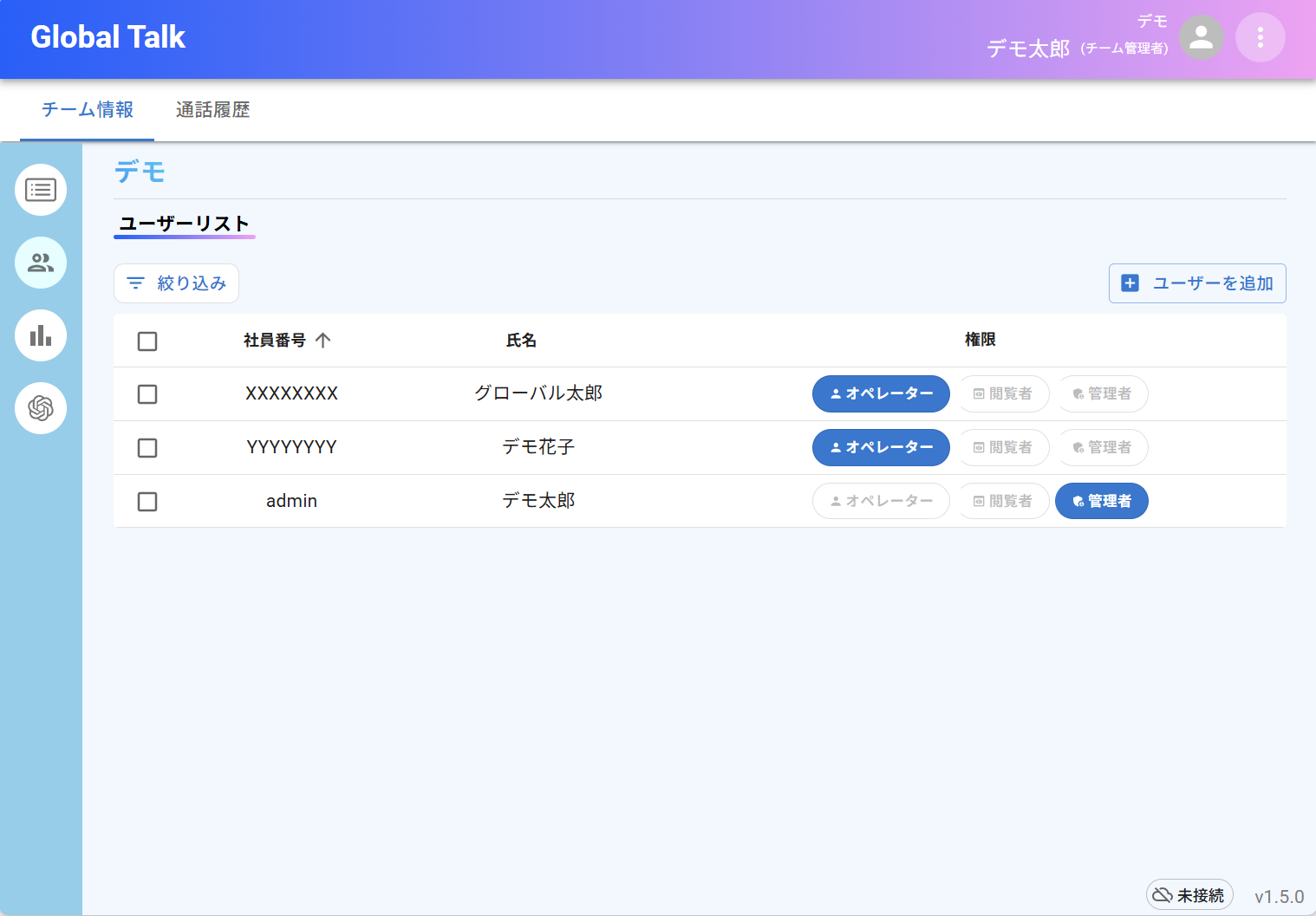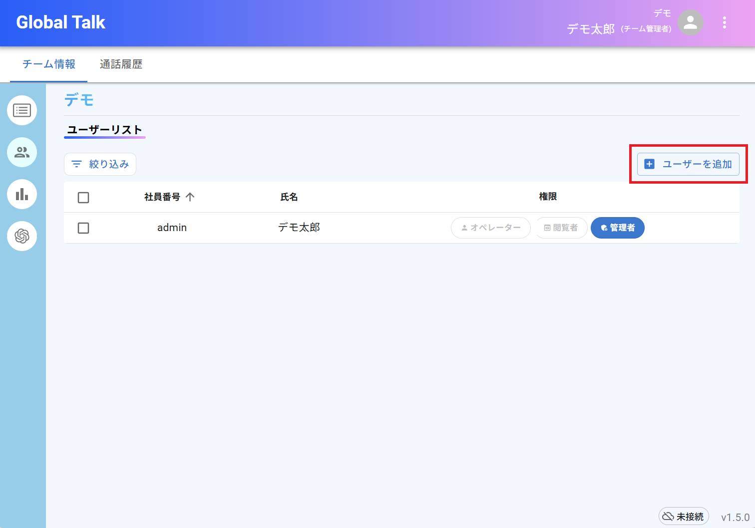 チーム情報ページでは、メンバーの管理や設定変更が可能です。